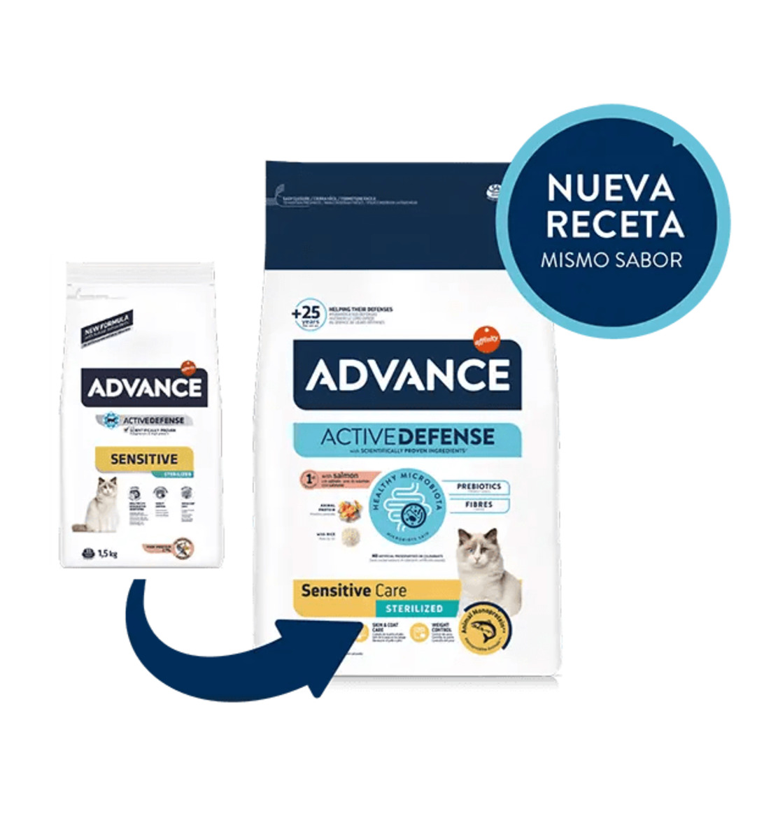 ADVANCE Sensitive Sterilized es un alimento completo y equilibrado especialmente formulado para gatos esterilizados.