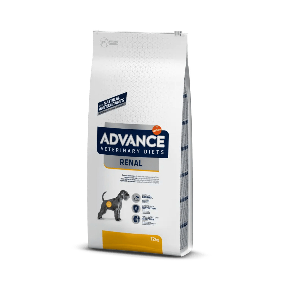 ADVANCE VETERINARY DIETS RENAL es un alimento dietético completo para perros adultos, con un nivel limitado de proteínas, pero de alta calidad y con un bajo contenido en fósforo. Está especialmente indicado para apoyar el funcionamiento del riñón en caso de insuficiencia renal crónica.