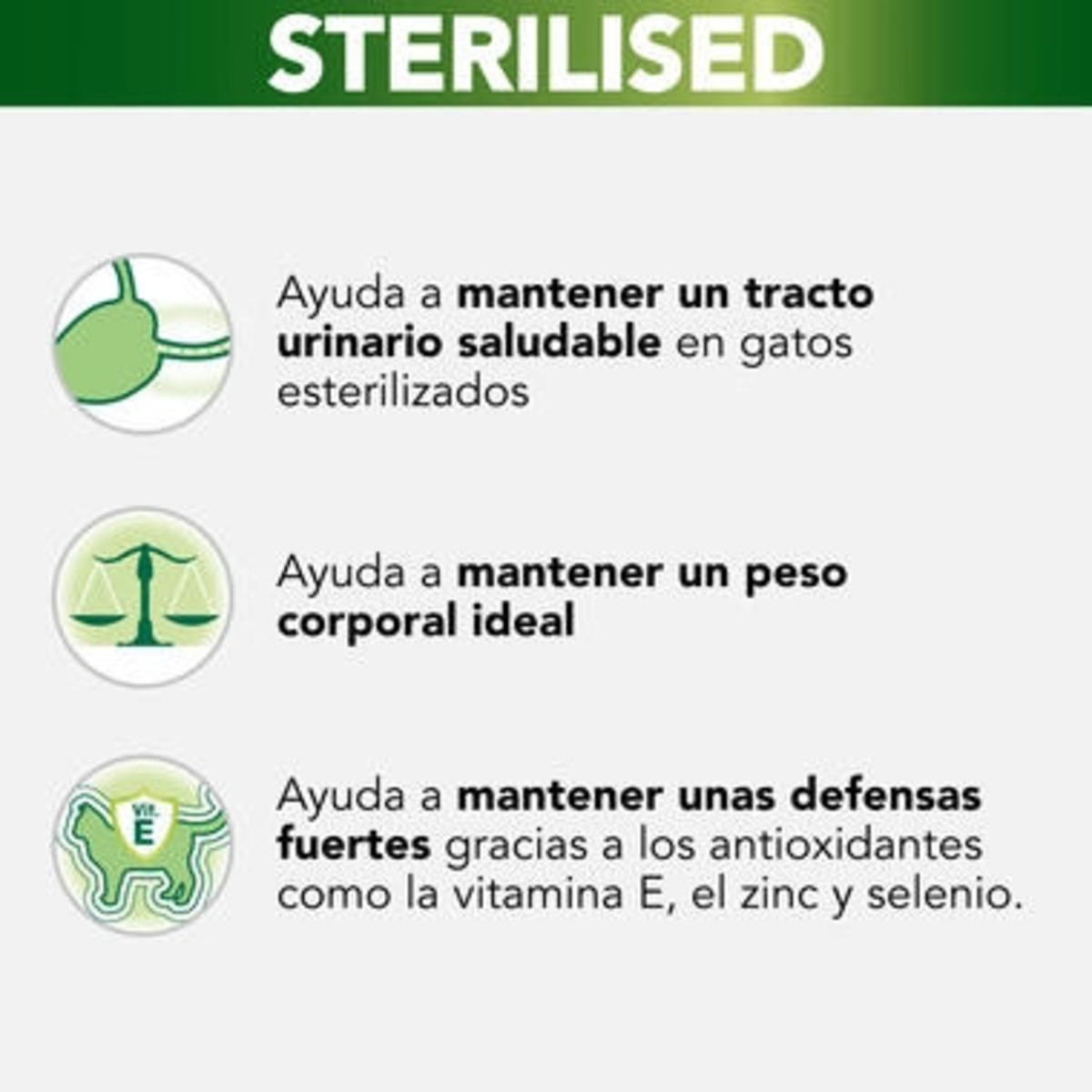 • Ayuda a mantener un peso corporal ideal después de la esterilización.