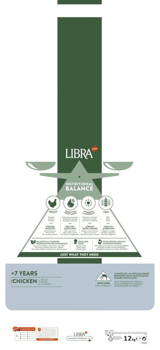 Sabroso alimento completo y equilibrado con Pollo, que contiene una proporción óptima entre proteína, ácidos grasos esenciales, vitaminas, minerales y fibra que aportan el equilibrio nutricional que tu perro mayor de 7 años simplemente necesita.