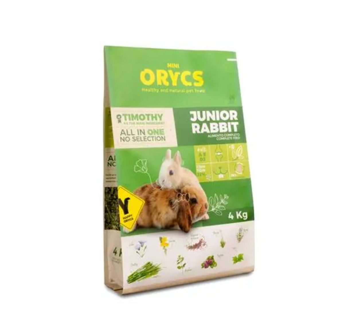 ORYCS Junior Rabbit es un alimento especialmente indicado para conejos enanos junior de hasta 6/8 meses.