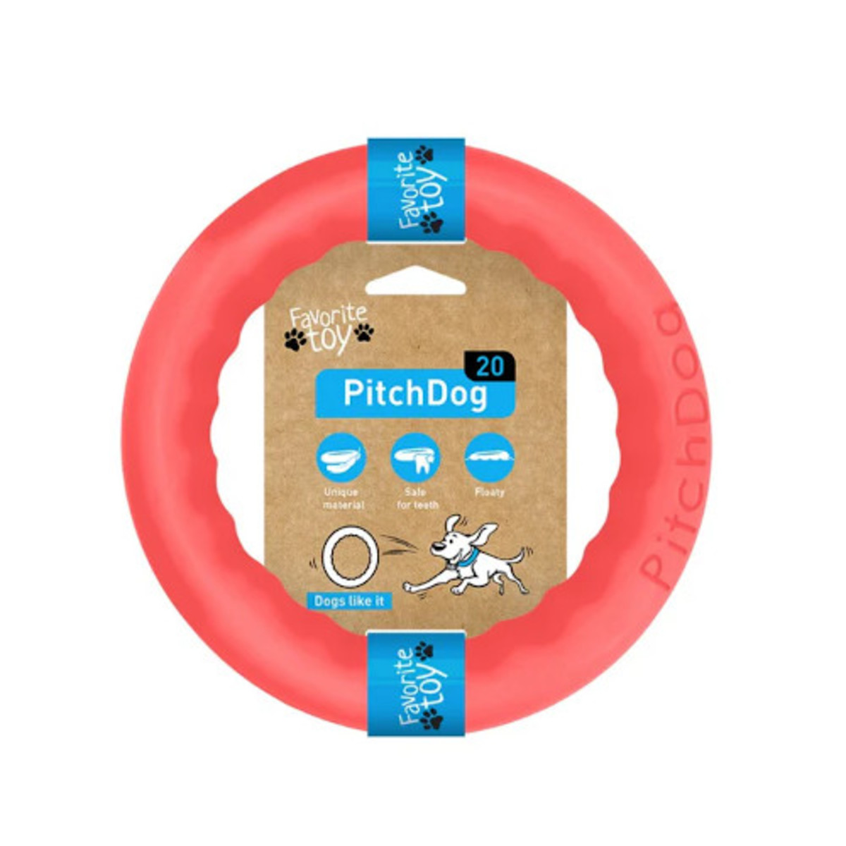 Los aros Pitchdog son el juguete interactivo clave para todos los perros y sus dueños que tengan ganas de jugar y hacer ejercicio. Su forma de anilla y su material ligero permiten que sea un juguete muy fácil de lanzar y recuperar. A los perros también les encanta tirar del aro mientras su dueño lo coge con la mano. El material del juguete es ligero, flotante, inodoro y bueno para los dientes. Se puede morder sin dañar los dientes ni las encías.