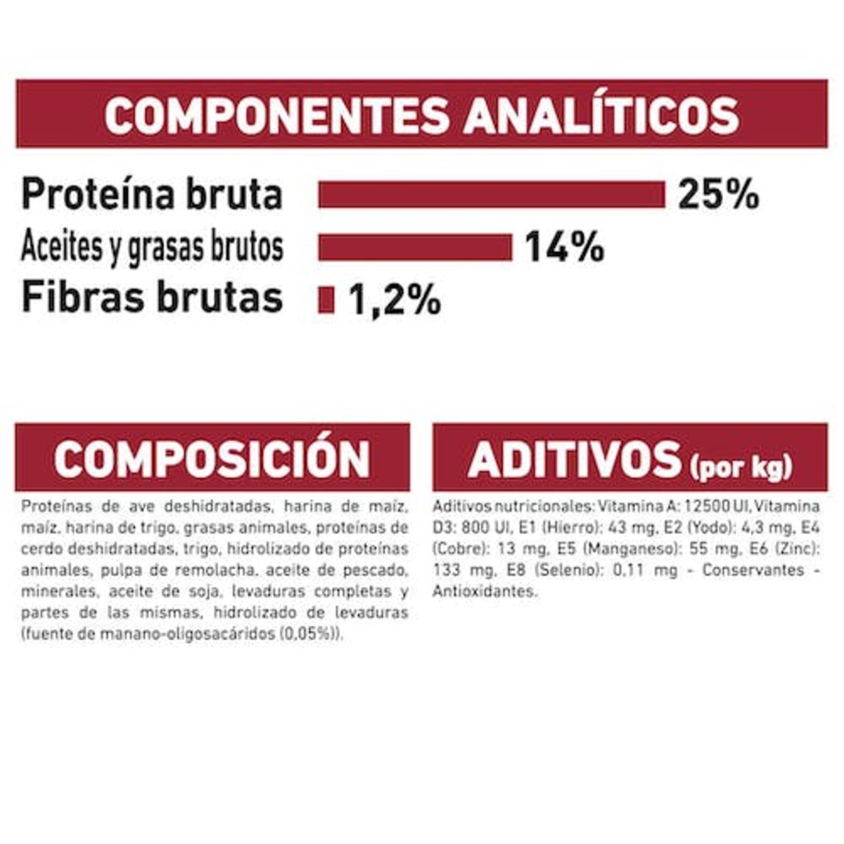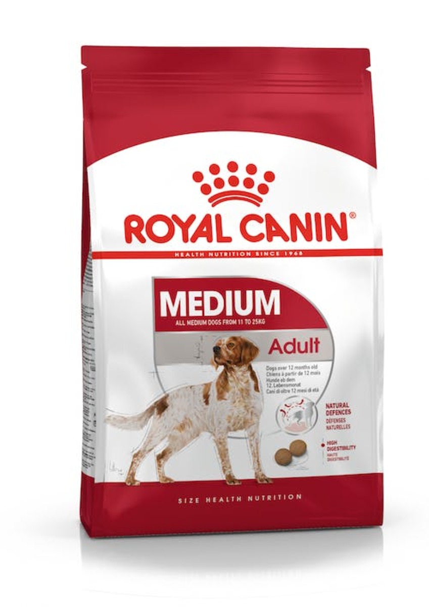 A los 12 meses, tu perro de tamaño de raza mediano ya ha finalizado su fase de crecimiento. Proporcionarle una nutrición óptima durante esta etapa de su vida es tan importante como cuando estaba creciendo. Garantizar que el alimento de tu perro le proporciona los nutrientes adecuados y en los niveles óptimos es fundamental para favorecer y mantener su buen estado de salud. Medium Adult de ROYAL CANIN® es un alimento específicamente formulado teniendo en cuenta las necesidades nutricionales de tu perro adulto de tamaño mediano y está indicado para perros de 1 a 7 años, con un peso de entre 11 y 25 kg. Medium Adult de ROYAL CANIN® contiene un complejo exclusivo de antioxidantes, y nutrientes como manano-oligosacáridos, para reforzar las defensas naturales de tu perro y el mantenimiento de un estilo de vida saludable. Gracias a una fórmula exclusiva que incluye proteínas de muy alta calidad y un aporte equilibrado de fibra alimentaria, Medium Adult de ROYAL CANIN ®, también es muy digestible, permitiendo que tu perro obtenga los nutrientes de forma efectiva Medium Adult de ROYAL CANIN® también está enriquecido con ácidos grasos omega 3, como EPA y DHA, que ayudan a mantener la salud de la piel y el pelo