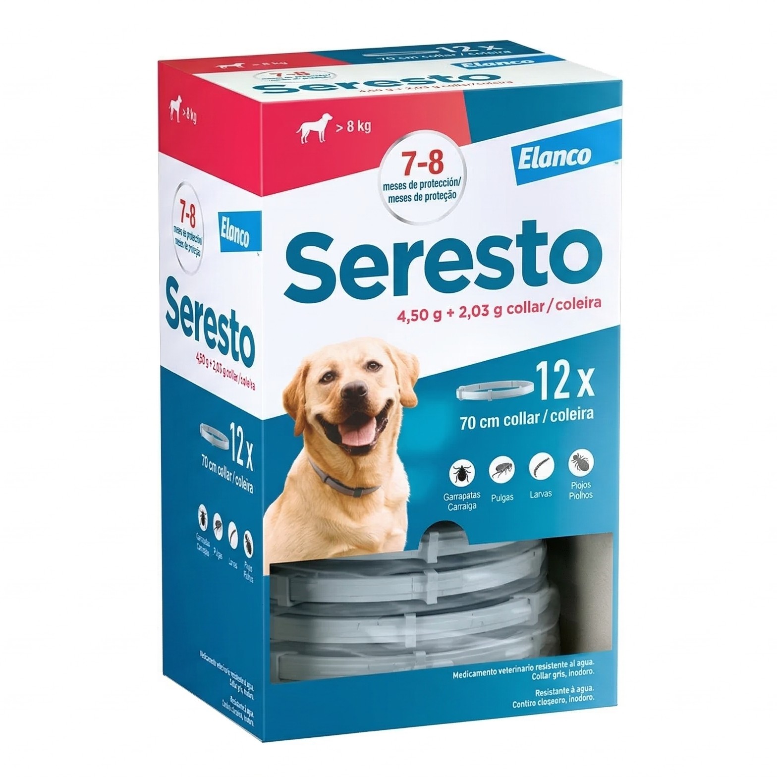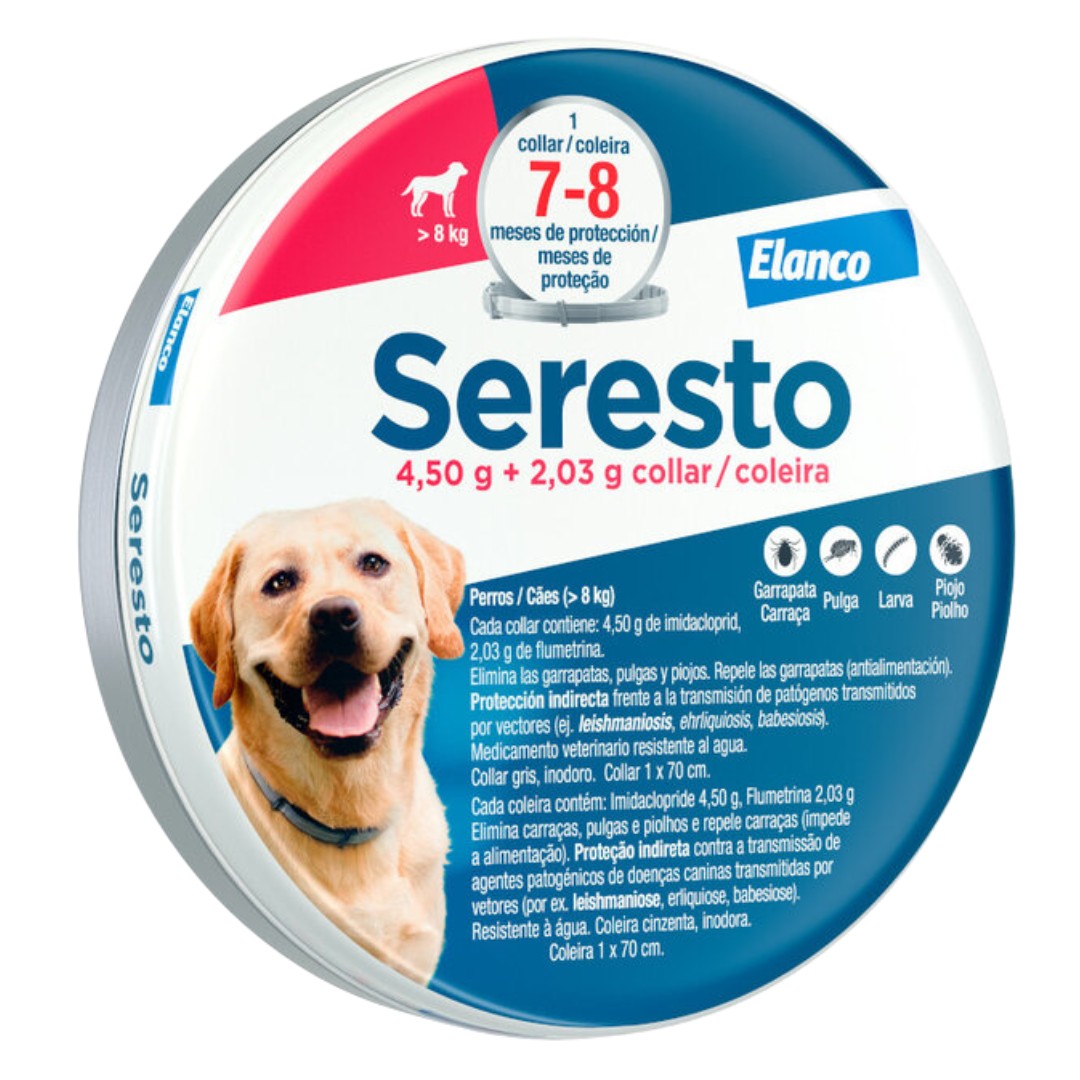 Un collar antiparasitario que protege a los perros contra pulgas y garrapatas, eliminando el riesgo de infestaciones. Este producto ofrece una protección continua de hasta ocho meses, gracias a su mecanismo de liberación controlada. Además, es resistente al agua y no tiene olor, lo que lo hace cómodo para el animal. Su acción rápida permite eliminar más del 99% de las pulgas en 24 horas y es seguro para la mayoría de los perros, aunque puede causar irritación en casos raros.