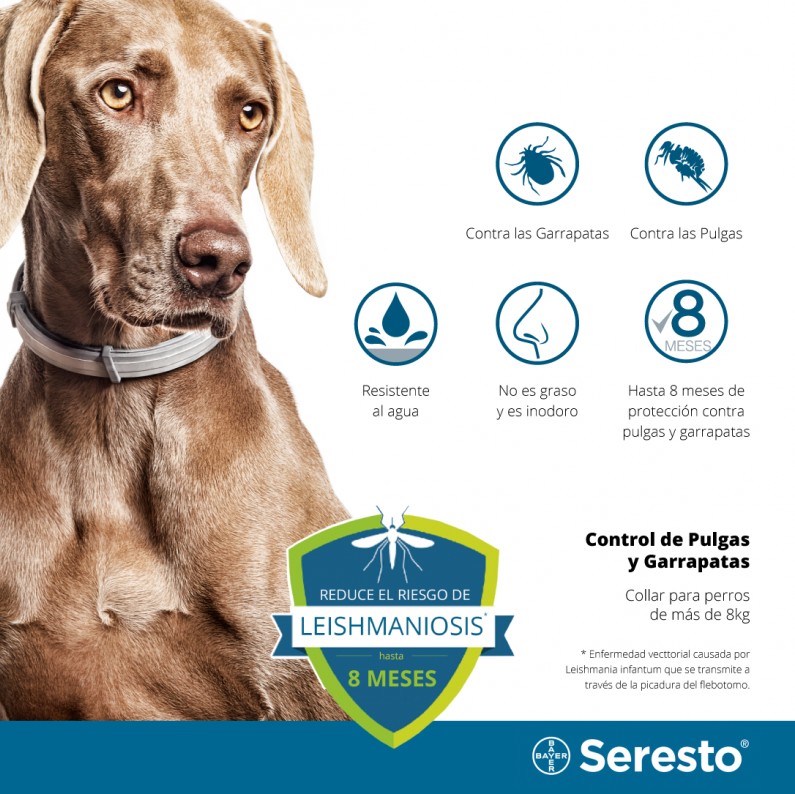Un collar antiparasitario que protege a los perros contra pulgas y garrapatas, eliminando el riesgo de infestaciones. Este producto ofrece una protección continua de hasta ocho meses, gracias a su mecanismo de liberación controlada. Además, es resistente al agua y no tiene olor, lo que lo hace cómodo para el animal. Su acción rápida permite eliminar más del 99% de las pulgas en 24 horas y es seguro para la mayoría de los perros, aunque puede causar irritación en casos raros.
