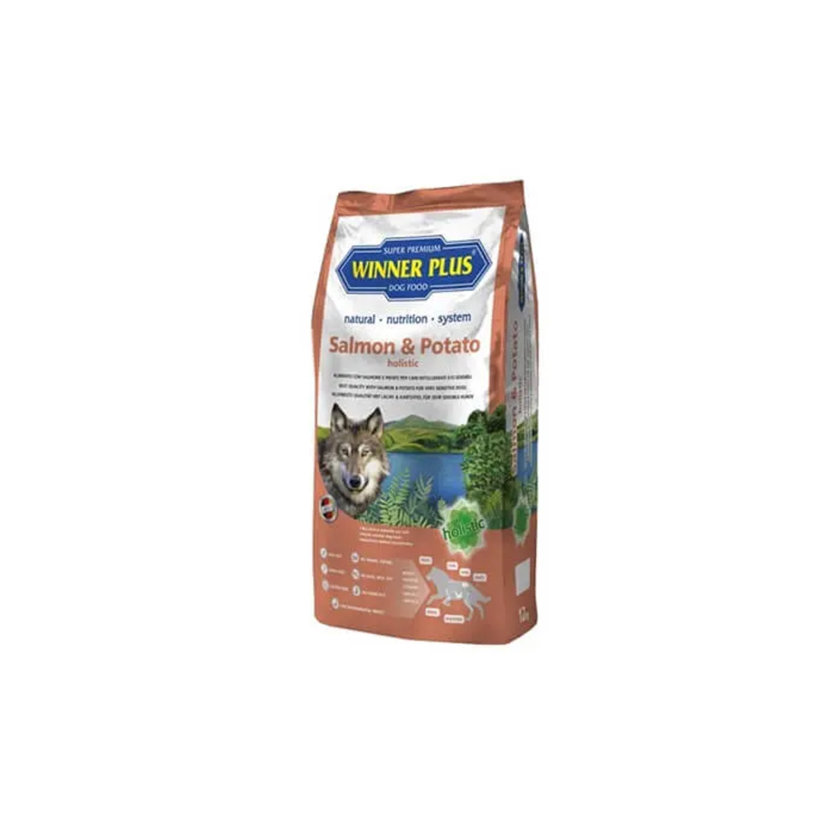 WINNER PLUS Salmon & Potato holistic es un alimento completo sin carne, ideal para las necesidades particulares de perros sensibles en cualquier etapa de su vida.