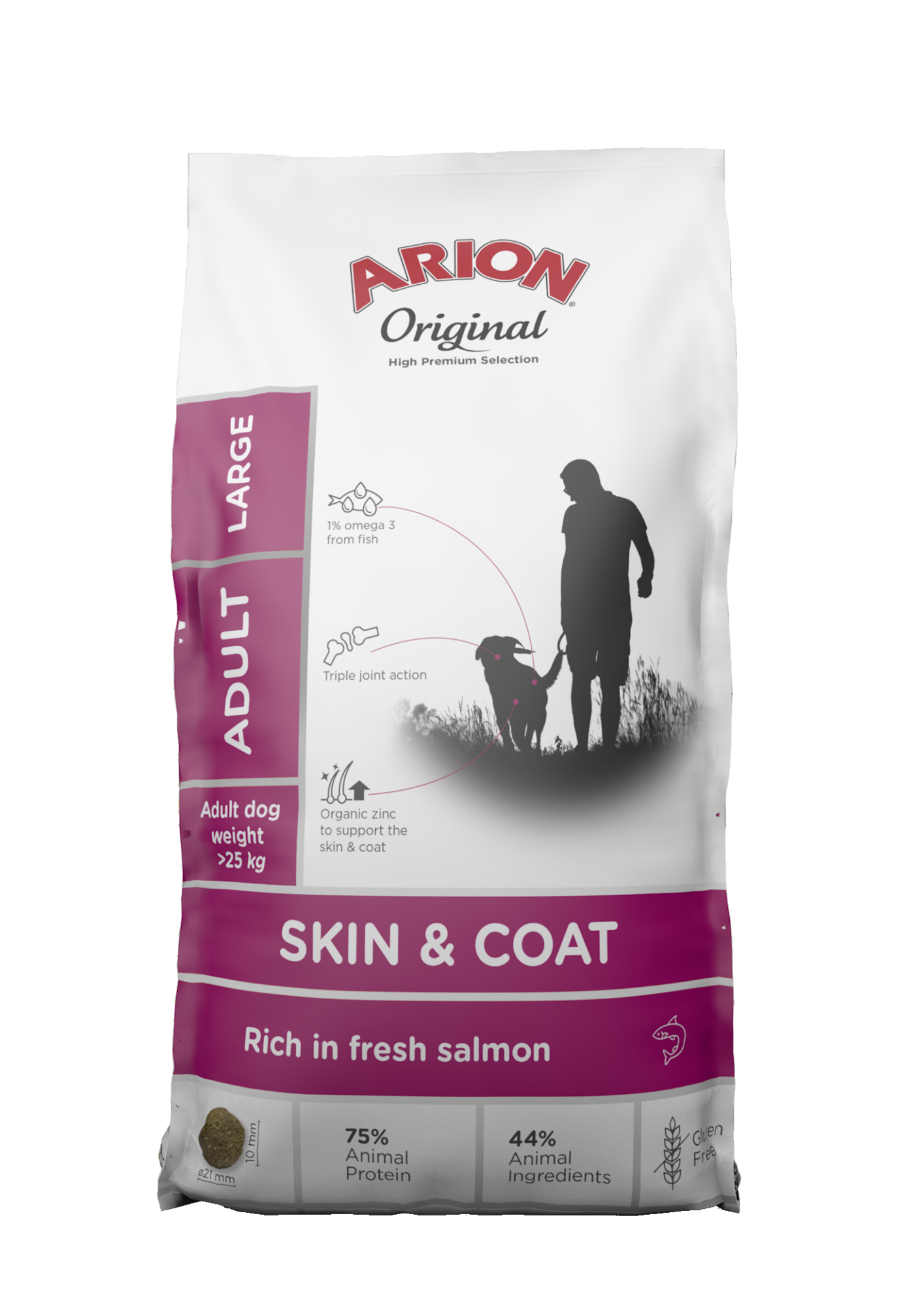 Alimento completo senza glutine per cani adulti di razza media, elaborato con pesce, ingredienti marini e zinco organico per favorire una pelle sana e un manto brillante, disponibile in formati da 2 e 12 kg.